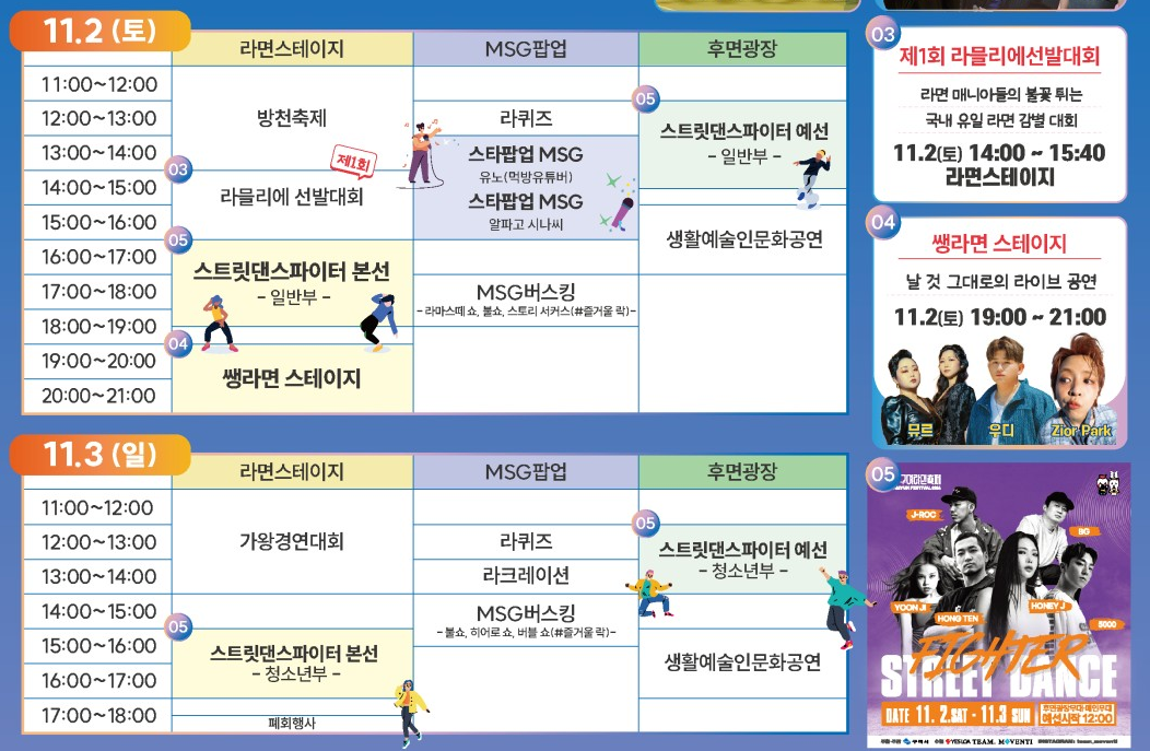 11월 1, 2일: 오전 11시 ~ 오후 9시 (라면 판매 라스트 오더: 오후 8시)