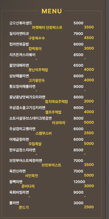11월 3일: 오전 11시 ~ 오후 7시 (라면 판매 라스트 오더: 오후 6시)