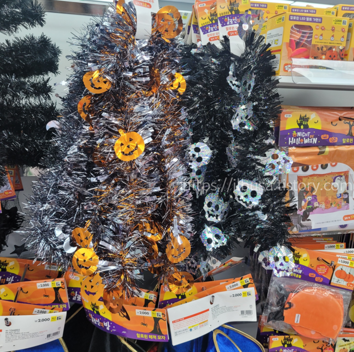 이번 시즌 다이소에서 특히 눈에 띈 소품 중 하나는 가랜드입니다. 가랜드는 여러 장소에서 할로윈 분위기를 내기 좋은 소품인데요, 다이소에서는 종류가 굉장히 다양했습니다.