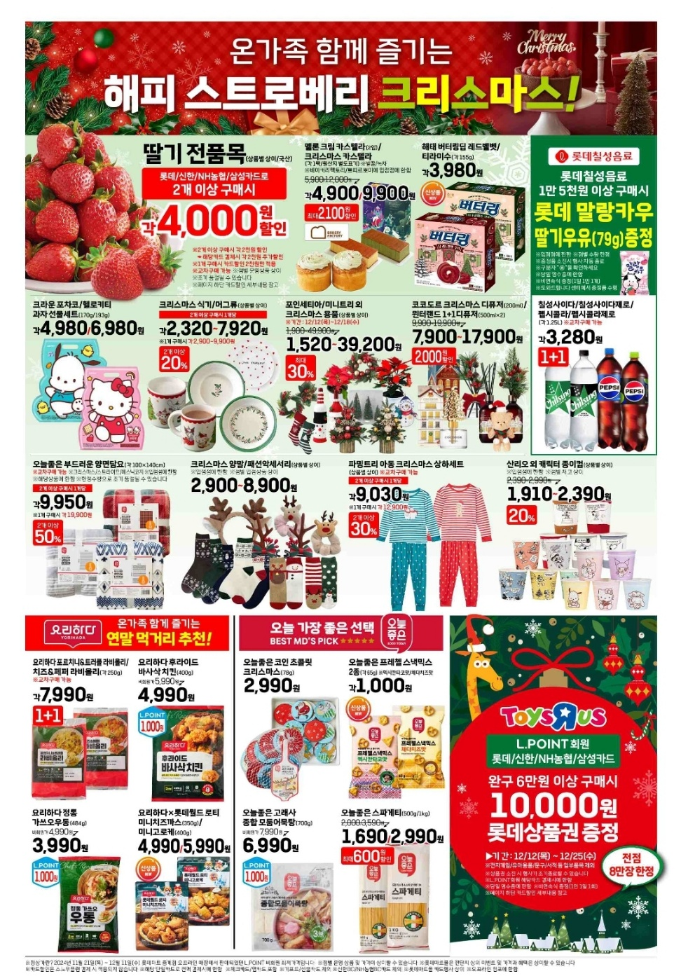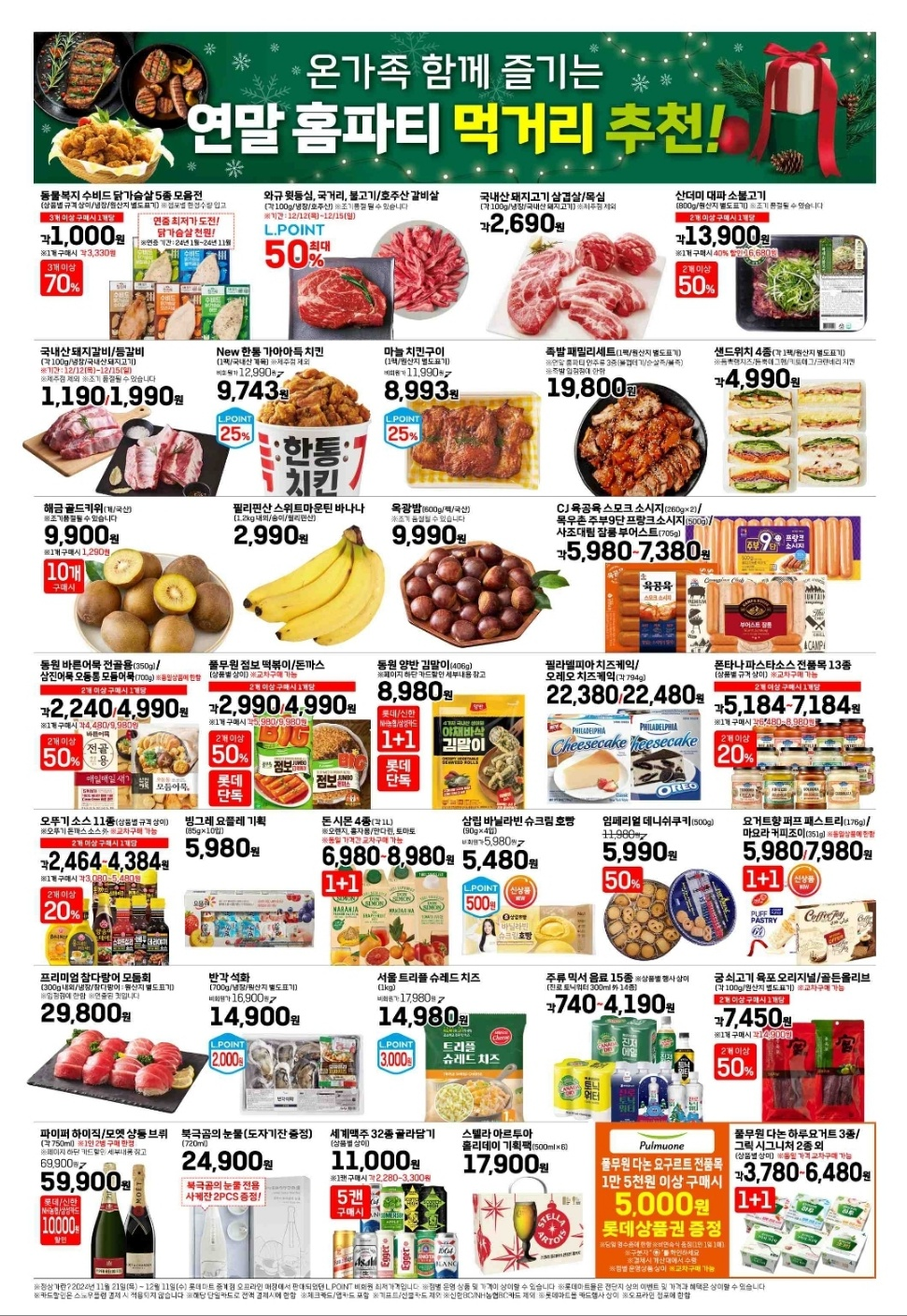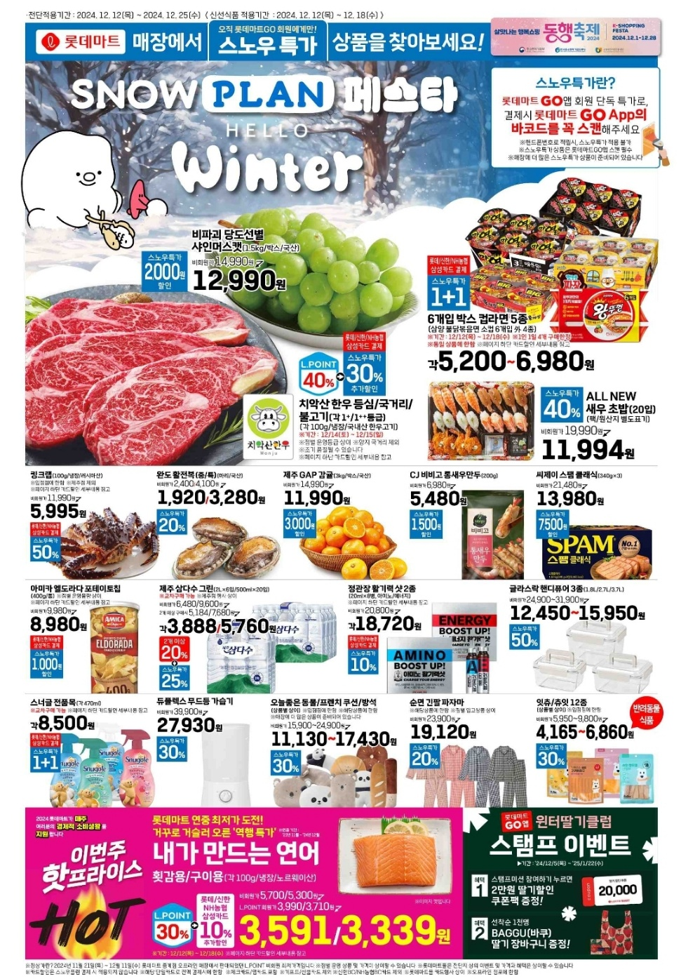 이번 롯데마트 12월 전단행사는 스노우특가 상품부터 1+1 행사까지 다양한 품목을 특별 가격으로 만나볼 수 있는 좋은 기회입니다. 특히 육류, 신선식품, 간편식 등 필수 구매 품목들이 대거 포함되어 있으니 알찬 쇼핑하시길 바랍니다.