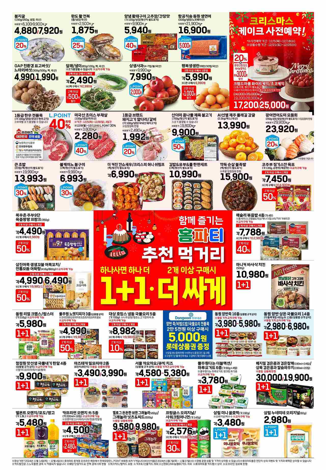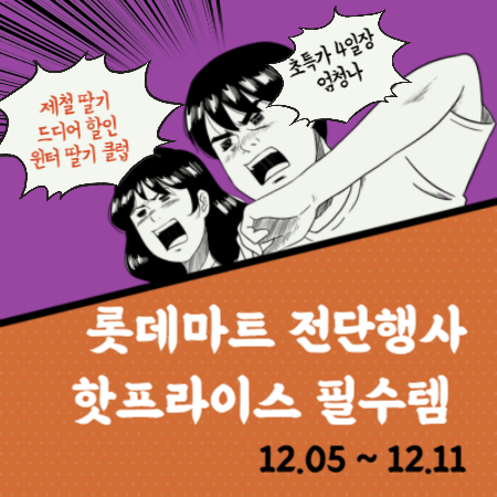 이번 롯데마트 전단행사는 가성비 높은 상품과 다양한 혜택으로 가득합니다. 가족을 위한 신선한 식재료, 간편식, 홈파티 음식까지 한 번에 준비할 수 있는 절호의 기회입니다. 12월 5일부터 12월 11일까지 진행되니 놓치지 마시고, 방문하셔서 즐거운 쇼핑과 알뜰한 소비를 경험해보세요! 행복한 연말 준비되시길 바랍니다! 😊
