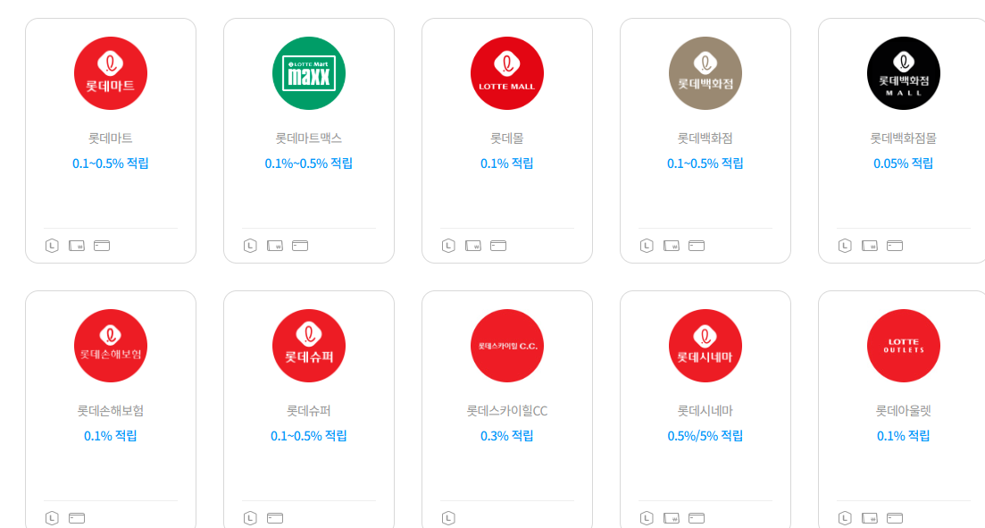 - 롯데마트 / 롯데슈퍼 / 롯데하이마트: 기본 0.5~2%