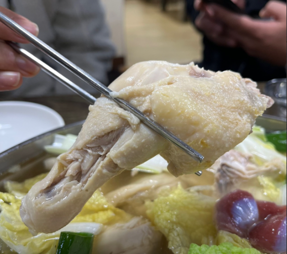 닭한마리를 오래 끓일수록 육수가 진해져 맛이 더욱 깊어진다고 합니다. 특히, 고기를 소스에 찍어 먹을 때 감칠맛이 폭발한다고 하네요.