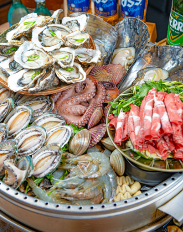 조개밭의 대표 메뉴는 조개전골인데요, 다양한 사이즈로 선택할 수 있어요. 2인 기준으로는 49,000원부터 시작해 푸짐하게 즐길 수 있는 황제스페셜 세트는 119,000원까지 있답니다.