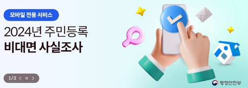 2024년 7월 22일(월) ~ 8월 26일(월)까지 전 국민을 대상으로 2024년 주민등록 사실조사가 실시됩니다.