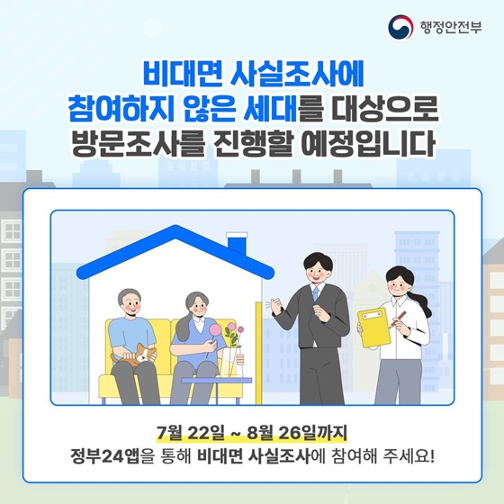 8월 26일까지 비대면 조사 기간이며, 그 이후 방문 조사가 진행됩니다.
