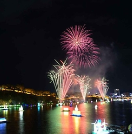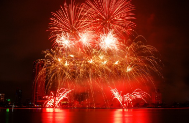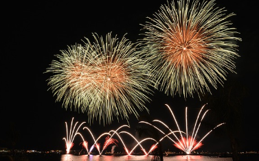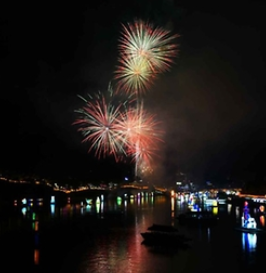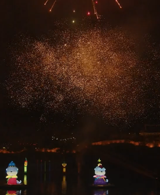 : 진주성 촉석루를 배경으로 펼쳐지는 수상 불꽃놀이 쇼는 진주 남강유등축제의 가장 큰 하이라이트입니다. 이 불꽃쇼는 단순한 불꽃놀이를 넘어서, 레이저를 활용한 멀티미디어 기술이 결합된 특별한 연출로 관객들을 맞이합니다. 화려하게 펼쳐지는 불꽃은 축제의 슬로건을 담아 의미 있는 메시지를 전달하며, 다채로운 색상과 형태로 하늘을 가득 채웁니다. 또한, 불꽃과 함께 레이저 빛이 결합되어 환상적인 시각적 효과를 만들어내며, 마치 하나의 거대한 예술 작품을 감상하는 듯한 느낌을 선사합니다. 진주성의 고풍스러운 모습과 남강의 물결 위로 피어나는 불꽃이 어우러져, 그 순간을 함께하는 모든 이들에게 잊을 수 없는 감동을 안겨주는 특별한 경험을 제공합니다.