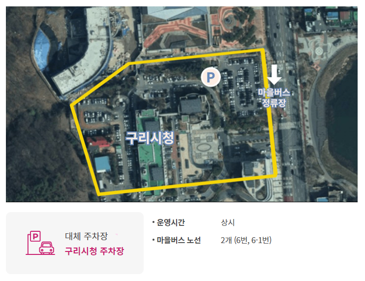 운영방법 : 대체 주차장(무료사용)에 승용차 주차 후 주변 마을버스 이용해서 이동