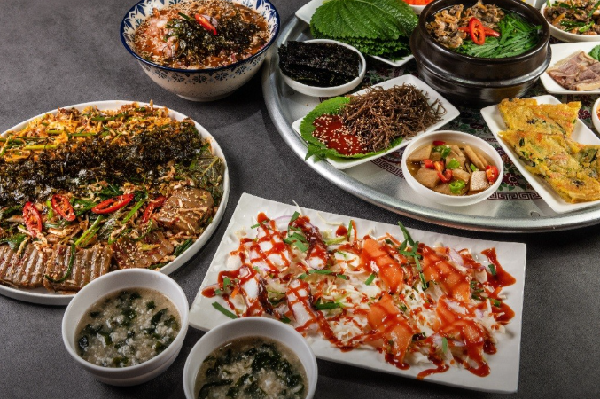 - 꼬막무침, 도토리묵, 연어 샐러드, 열무 냉국수 등