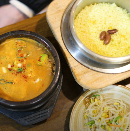 외할머니집의 인기 메뉴는 청국장 외에도 다양한 전통 한식이 가득합니다. 가장 인기 있는 메뉴는 역시 청국장(10,000원)과 손두부(10,000원)인데요. 특히 청국장은 깊은 맛을 자랑하며, 국산 콩을 사용해 더욱 건강하게 즐길 수 있습니다. 두부전골과 콩나물 솥밥도 인기 메뉴로, 두부전골(32,000원)은 국산콩으로 만든 순두부와 민물새우, 소고기를 함께 끓여낸 국물 요리로 시원하고 고소한 맛을 느낄 수 있습니다.